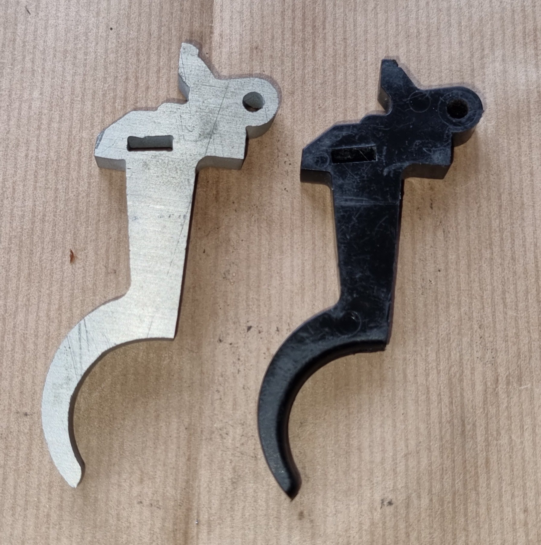 Feinwerkbau Sport 8mm thick may need a little diy finish. Specially made High quality Aluminium Trigger (see photo left, Early plastic one on the right Mk 1), as the standard ones would break, The Mark 1 had a plastic trigger (the one on the right, my one is on the left) and the Mark 2 had a weak hollow mazak alloy one. This trigger will fit both models.